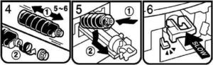 - Lắp cartridge máy photo vào đúng vị trí ban đầu. Lắp đặt cẩn thận để chắc chắn các tiếp điểm trên hộp mực tiếp xúc khớp với máy